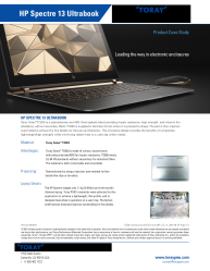 The HP Spectre weighs only 1.1 kg (2.45 lbs) and is the world’s thinnest laptop. Toray's materials were selected to achieve a lightweight, thin profile and to dissipate heat when in operation on a user’s lap.