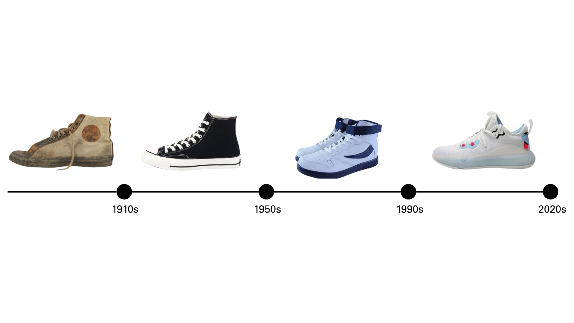 In 1917, the first basketball-specific shoe was introduced: the Converse Non-Skid. It featured a treaded sole for better traction, reflecting the growing intensity of the game, which now involved more running, jumping, and quick directional changes. From the 1920s through the 1960s, the era of the Converse Chuck Taylor All Star dominated. Chuck Taylor, a semi-pro player turned Converse salesman, helped redesign the Non-Skid and promoted it nationwide through workshops and events. By the 1960s, an estimated 90% of college and professional basketball players were wearing Chuck Taylors, a testament to their performance and popularity.